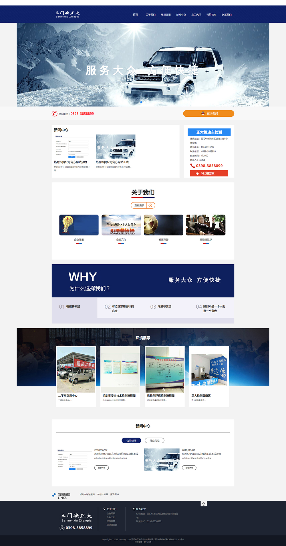 三門(mén)峽正大機(jī)動(dòng)車(chē)檢測(cè)有限公司,是一家集機(jī)動(dòng)車(chē)安全技術(shù)檢驗(yàn)和機(jī)動(dòng)車(chē)環(huán)保尾氣檢驗(yàn)為一體的大型機(jī)動(dòng)車(chē)安全技術(shù)檢驗(yàn)檢測(cè)機(jī)構(gòu),審車(chē)快,服務(wù)好。