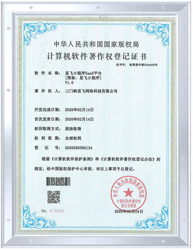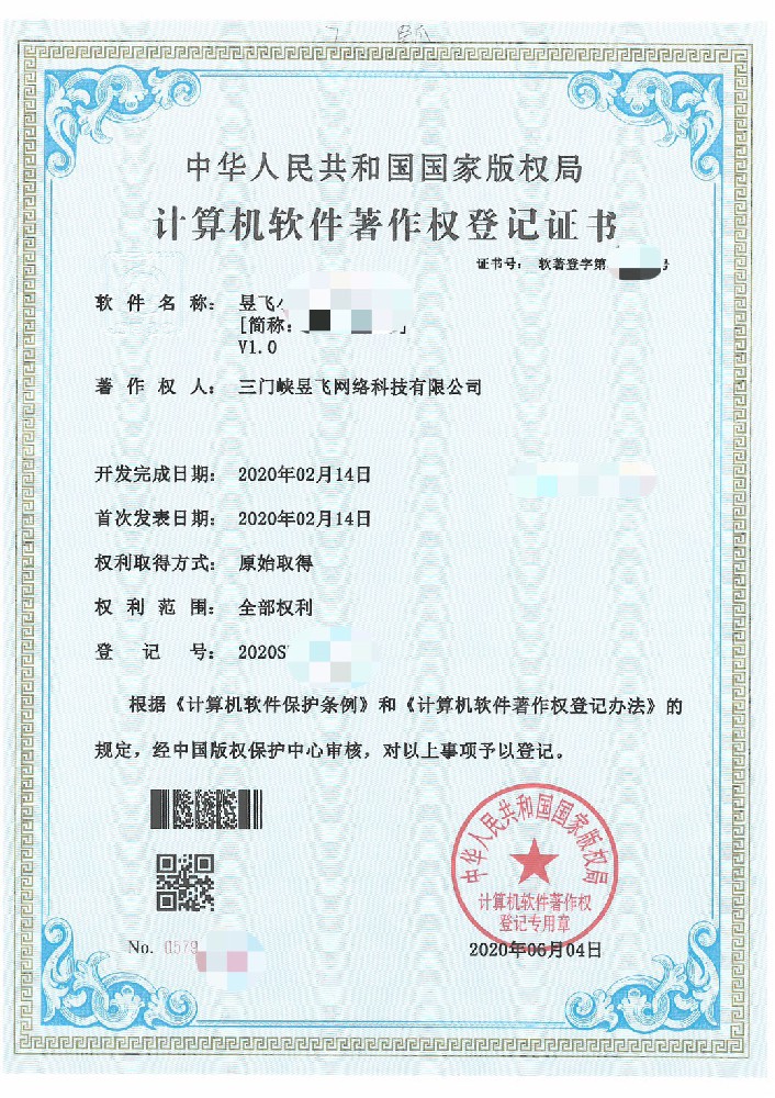 三門峽昱飛網(wǎng)絡(luò)科技有限公司取得1項(xiàng)計(jì)算機(jī)軟件著作權(quán)登記證書