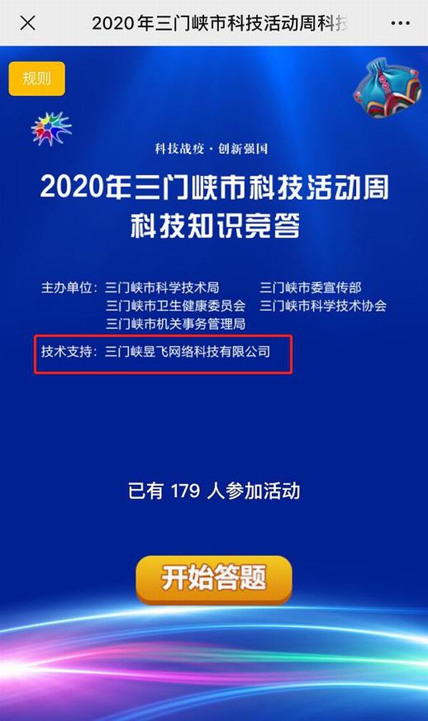 2020年三門峽市科技活動周于8月21日上午在三門峽國際文博城西廣場舉行,三門峽昱飛網(wǎng)絡科技有限公司為活動周“科技知識競答”提供技術支持!